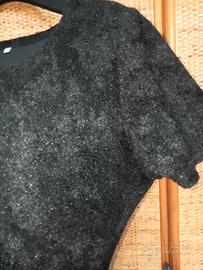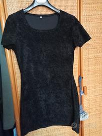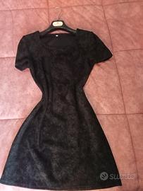Elegante abito nero dal taglio tubino, con un tessuto che ricorda il velluto.Maniche corte. Scollo quadrato.Abito nero elasticizzato in tessuto simile al velluto, adatto x tutte le stagioni, ottima vestibilità, comodo, elasticizzato semplice - le misure sono in foto 🌹 usato una volta x cerimonia, non ha difetti - poliestere misure spalle 42 cm - ascelle 42 cm - lungo 80 cm