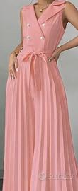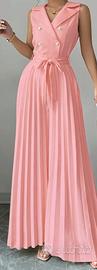 abito/tuta pantalone elegante rosa cipria, mai indossato, doppio petto con bottoni, cintura in vita, pantaloni plissettati