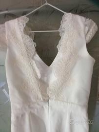 Tuta sposa elegante praticamente nuova TG 40-42 in pizzo e viscosa fatto da sarta quindi unico regalo strascico