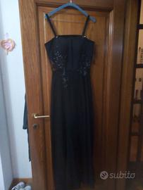 Vendo per inutilizzo tuta intera da cerimonia con decorazione strass e coppe interne. Tulle sul pantalone che crea l'effetto di un vestito