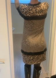 Abito Twin Set con stampa animalier. Presenta un dettaglio in pizzo e balza.