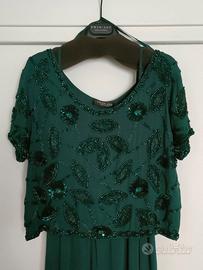abito twin-set lungo elegante verde con ricami di paillettes taglia S