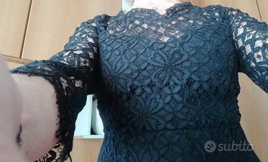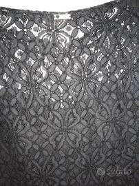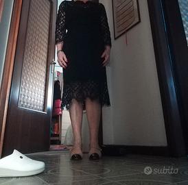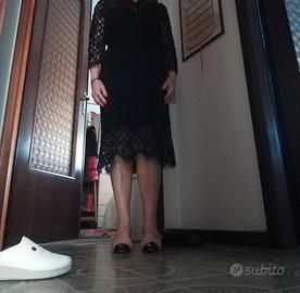 vendo vestito in pizzo Twinset taglia 44 nero longuette mai indossato per cambio taglia. manica a tre quarti sempre in pizzo con riga in raso opaco. vestito molto elegante adatto a cerimonie.