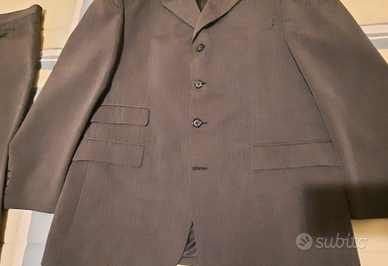 Abito uomo elegante, estivo/peimaverile , grigio scuro , taglia 50 , monopetto, 4 bottoni, tasca doppia su lato destro della giacca , monospacco posteriore, pantalone con tasche dritte alla carrettiera . Tenuto ottimamente vendo per motivi di taglia ad euro 45