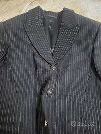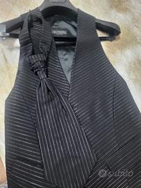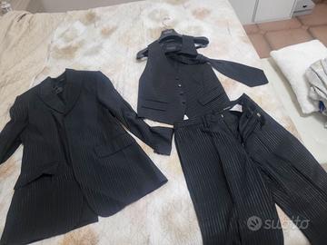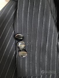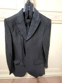 Vendo elegante completo uomo firmato Carlo Pignatelli, indossato una sola volta per cerimonia. Taglia: 46 Colore: nero con leggere righe gessate Il completo include: giacca pantaloni gilet cravattino coordinato Abito molto elegante e raffinato, ideale per matrimonio, cerimonia o eventi importanti. Nel prezzo includo anche 2 abiti da cerimonia taglia 44, usati per cresima. Condizioni ottime. Prezzo trattabile.