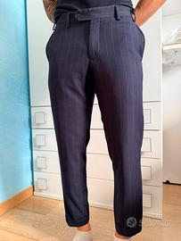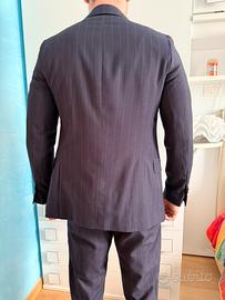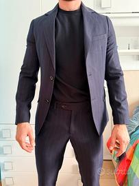 Abito originale Doppelgänger da uomo, taglia 44, completo giacca + pantalone, colore blu navy con righe.