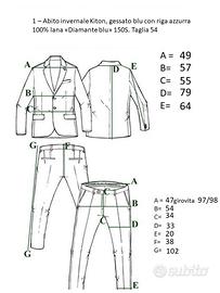 Abito uomo invernale- Kiton gessato blu con righina azzurra. 100% lana diamnte blu 150S. taglia 54