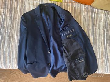 Abito da uomo Massimo Dutti taglia 48 (US 32), in buone condizioni "super 120's wool". Colore blu scuro (misura lunghezza gamba 100 cm circa; misura lunghezza manica 64 cm circa). Alcune piccole imperfezioni su giacca e pantalone, poco visibili. Ok per spedizione o consegna di persona Milano città.