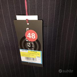 Abito da uomo gessato, giacca taglia 48, pantalone taglia 52. Nuovo con ancora il cartellino