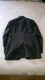 Abito da uomo "Niama Basic" by Conbipel in pura lana vergine, tessuto "Tiberghien", grigio medio gessato (riga giallo-oro), giacca a tre bottoni, pantaloni senza pinces, usato poco, perciò in ottimo stato, taglia 46 (sebbene sull'etichetta sia erroneamente riportato 44).