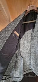 Abito in puro lino Combipel taglia 52 drop6 (conformata) Pantalone con risvolto 3cm, lunghezza al cavallo 73 cm, girovita 96cm, larghezza al fondo 20cm. Giacca: Spalle 48cm, lunghezza 78cm, manica 67cm, doppio spacco posteriore, 2 bottoni. Usato pochissimo, ottime condizioni.