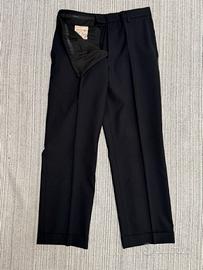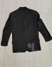 Giacca taglio classico, tre bottoni, doppio spacco posteriore, Colore: grigio scuro, Tessuto: 100% pura lana vergine Super Tasmanian 120'S, Taglia 46 (lavori di sartoria Giacca lunghezza: 75,5cm, lunghezza maniche: 56cm, larghezza spalle: 47cm; Pantalone lunghezza: 95cm ) - Stato: usato/ottimo; ottima vestibilità, tasche giacca esterne ancora cucite.
