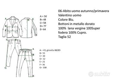 Abito uomo primavera/autunno Valentino Uomo. Colore blu, bottoni in metallo dorato. 100% lana vergine super. Fodera 100% cupro. Taglia 52