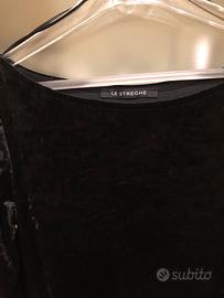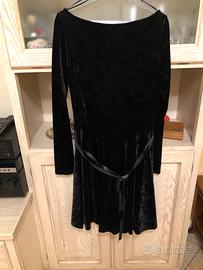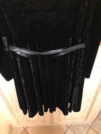 Abito vellutino nero elasticizzato, manica lunga gonna ampia mai usato