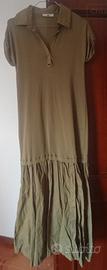 Abito tinta unita verde militare in cotone e viscosa Twinset. Lavorato a maglia con gonna a ruota, mai indossato. Taglia S/40