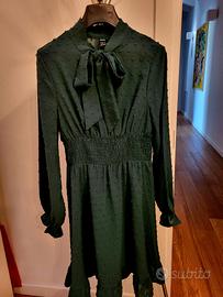 vendo abito verde scuro maniche lunghe con bel fiocco davanti. tg s. perfetto per la mezza stagione e in inverno!