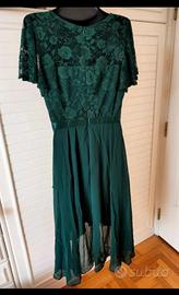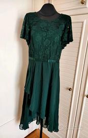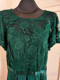 Abito verde scuro pizzo e chiffon