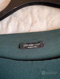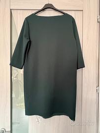 abito elegante ma taglio dritto e semplice di colore verdone, lunghezza medio corta. - Maniche a tre quarti. - Scollo a barca e taglio a vivo