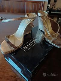 Abito lungo Versace elegante per cerimonia serate al mare crocere TG S e sandali martine clay con qualche graffio di usura ma ancora belli n.36.5