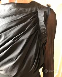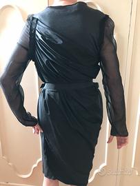 Solendido abito, vestito, originale Lanvin alta moda, taglia 42, Made in Francia, modernissimo, composto da un tubino il maglina di pura lana e da una parte esterna tipo peplo in pura seta, cintura in elastico.