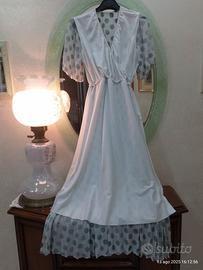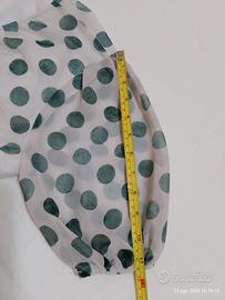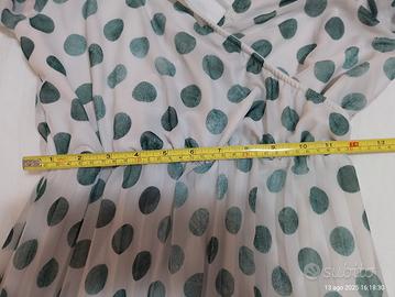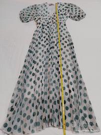 Abito vestito lungo bianco latte con pois colore verde tonalità bottiglia/salvia perché alcuni pois sono più verde scuro ed altri verde più chiaro.