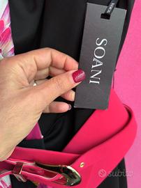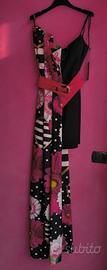 abito doppia lunghezza tubino nero al di sotto parte più lunga fantasia multicolor zip sul dietro cinturone incluso taglia italiana 38 brand Soani