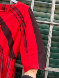 Vestito vintage rigato con bottoni sul petto ed elastico in vita.