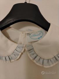 Abito vintage bianco e azzurro, con sottogonna, molto particolare indossato