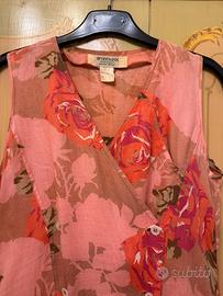 Abito vintage estivo in puro lino di Sportmax , fantasia floreale , tasche alla francese e taschino sul petto .