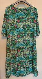 Abito a manica corta. Fantasia floreale con prevalenza verde, azzurro e tiffany.