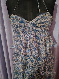 Abito Zara a Balze in chiffon fantasia floreale bianca azzurra, foderato. Taglia M