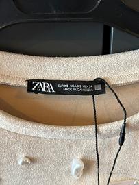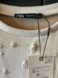 Abito ZARA con applicazioni di perle, grigio ghiaccio, nuovo con cartellino, taglia XS.