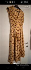 Abito lunghezza MIDI in fantasia plissettato con un cordino in vita da legare intorno o solo dietro per segnare il punto vita. il colore è molto più bello dal vivo, è in ottime condizioni.