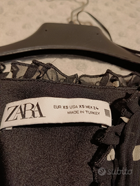 Abito plissettato nero a pois maniche lunghe. Modello svasato, comodo e confortevole.