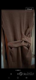 Abito Zara soft marrone nuovo caldo e comodo , la taglia c'è scritto S ma veste una M.. Ha la cinta in vita ed è un po' elastico quindi si adatta alla propria taglia.. Il tessuto è soft caldo è smanicato e ha uno spacco dietro , cinta regolabile e tasconi
