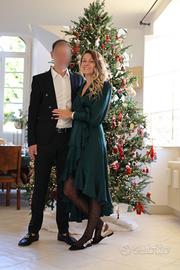 Vendo raffinato abito firmato Zimmermann, realizzato in 100% seta, in una splendida tonalità verde smeraldo, perfetto per occasioni eleganti e speciali. ✨ Dettagli: Tessuto in pura seta, leggero e fluido Scollatura a portafoglio (wrap) molto femminile Cintura in vita con fiocco regolabile Maniche lunghe con polsini arricciati Gonna asimmetrica con balze e movimento elegante Vestibilità fluida e valorizzante 👗 condizioni eccellenti 📏 Taglia: 1 🏷️ 100% originale Zimmermann Perfetto per eventi, cerimonie, feste o occasioni importanti.