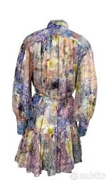 Taglia S, 40/42. Zimmermann realizza questo abito chemisier Rhythmic viola in leggero chiffon con stampa floreale, arricciato sulle spalle e con maniche a palloncino, poi stretto in vita con una cintura. 75% cotone, 25% seta.