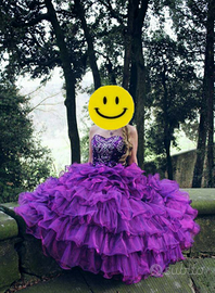 Abito lungo da sera elegante con rouches color ciclamino come in foto, taglia dalla 40 alla 48 regolabile sul dietro con lacci del corsetto, adatto a feste eleganti, diciottesimi, avvenimenti, ecc