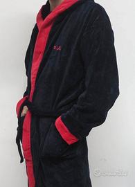 Accappatoio Fila blu e rosso in morbidissimo cotone. Nuovo con etichetta e busta originale. Taglia S/M veste una taglia 48. Con due tasche, cintura e cappuccio.