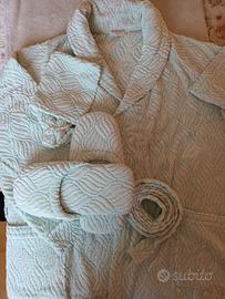 Vendo accappatoio nuovo, mai usato, taglia XL , colore verde chiaro, con annesse ciabattine , manopola, tutto in spugna di cotone.