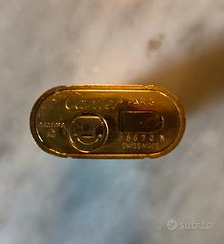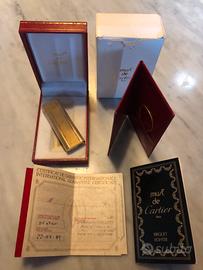 Accendino Le Must de Cartier placcato oro. Perfette condizioni , mai usato e mai ricaricato. Completo di :confezione, astuccio, accessorio per ricarica, libretto istruzioni , garanzia originale , marca bollo dell’epoca.
