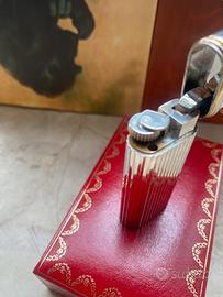 Accendino Godron Cartier argento accendino vintage Cartier Les Must ovale con motivo godron, probabilmente in argento massiccio o placcato argento.