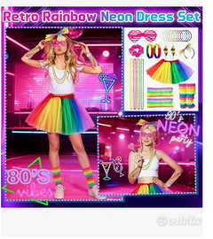 Vendo set completo di accessori neon da donna, perfetto per feste a tema, discoteca, Carnevale, Halloween, cosplay e serate revival anni ’80. Può essere indossato come outfit completo oppure abbinato liberamente per creare look sempre diversi 😍 NUOVO