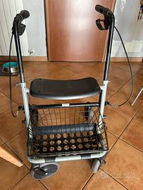 Deambulatore per anziani, ottimo stato con carrellino dotato di freni