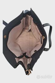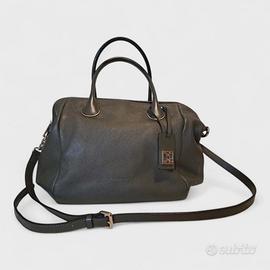 1. € 25.00 Borsa tote con manici rigidi circolari e tasca esterna piatta con chiusura a zip orizzontale, logo all over. Dotata di tracolla removibile. per doppia portabilità. Brand: Romeo Gigli Colore: nero Materiale sintetico Misure: altezza cm 37 ca. larghezza cm 40 presa dal centro larghezza dei lati cm 15 altezza fondo cm 12 larghezza fondo cm 44 Usato in ottime condizioni (pari al nuovo) 2. € 105.00 Borsa a mano con doppi manici e tracolla regolabile e rimovibile. Chiusura a zip. Interno in stoffa, due tasche interne: una con zip una aperta. Fondo rettangolare con 4 piedini in metallo. Disponibile dustbag originale. Brand: Coccinelle Materiale: vera pelle e parti in metallo. Colore: verde militare scuro; parti in metallo dorate. Misure: fondo rettangolare cm 28,5 x 12,5 lunghezza zip cm 44,5 altezza cm 25 circa larghezza cm 44 circa Pari al nuovo, usata pochissimo. Da segnalare: piccolissimo segno sul fondo, non visibile quando è indossata. 3. € 70.00 Borsa tote portabile a spalla e a tracolla; tracolla regolabile e rimovibile. Chiusura con zip e clup magnetico. Interno con una tasca che si chiude a zip. Logo frontale. Brand: "Twinset Milano" Colore nero, interno rosa chiaro. Materiale fodera 100% poliestere materiale esterno 100% poliuretano Misure: fondo cm 36x12,5 profondità cm 30 altezza cm 31 larghezza cm 35 Usata pochissimo. Da segnalare: sul retro e sul davanti ci sono due piccolissime macchioline lucide. Scegli l'articolo o gli articoli e preparo l'annuncio. Fornisco altre foto dettagliate su richiesta.