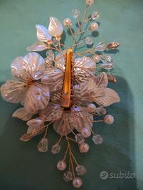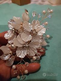 Fermaglio per capelli fatto a mano con perle e cristalli con petali di conchiglia bianca, accessorio per capelli da sposa, e non solo. Colore bianco/ perla. Ho più prodotti, dettagli si possono avere in messaggio.