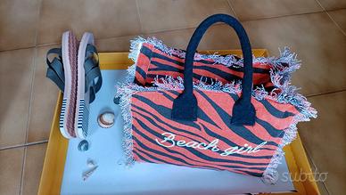 - borsetta mare marca "Seamar", modello zebra. Manico corto, chiusura a zip. 100% cotone. Misure: 30x24x14 cm.