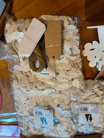 - etichette con cuoricino in cartoncino con corda iuta (50 marroni e 14 bianchi)