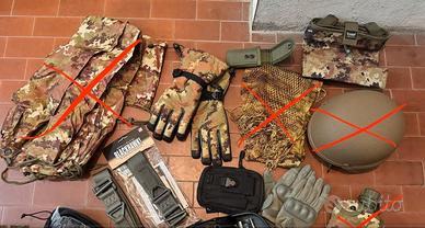 Vendo per surplus il materiale in foto, escluso quello contrassegnato, tutto assolutamente nuovo o appena provato e riposto. In perfette condizioni e di alta qualità. Specifico che NON si tratta di materiale delle FFAA o Esercito ma con policromia e fattura del tutto identica. Taglie S, 46/48. NON si tratta di armi da softair.