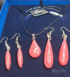Set di gioielli delicati e trasparenti nel colore rosa, Anallergici senza nichel, argento 925,Decorazioni brillantini,resina Per qualsiasi domanda sono a disposizione.